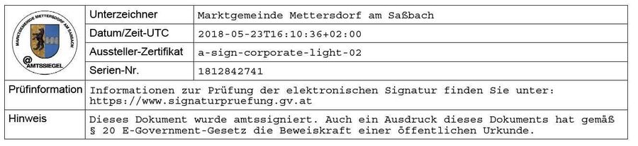 Verifizierung bzw. sonstige Auskünfte zu amtssignierten Dokumenten der Marktgemeinde Mettersdorf am Saßbach: